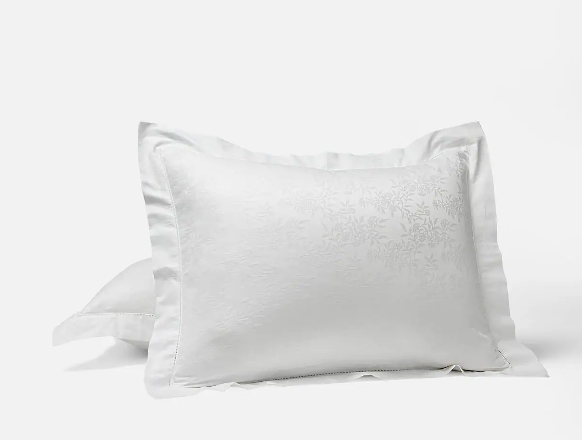 Part of our Legacy Collection, the Heirloom Organic Sateen Jacquard Sham is crafted from the finest 100% American-grown extra-long staple cotton. The exquisite sateen fabric offers an ultra-smooth, soft and silky feel. Expertly woven with a jacquard weave at one of the world’s most esteemed mills, this sham features a vintage-inspired leaf pattern for an elegant, nature-inspired aesthetic. Finished with a luxurious wide flange and detailed with an embroidered eyelet stitch, every element reflects meticulous attention to quality and artistry.